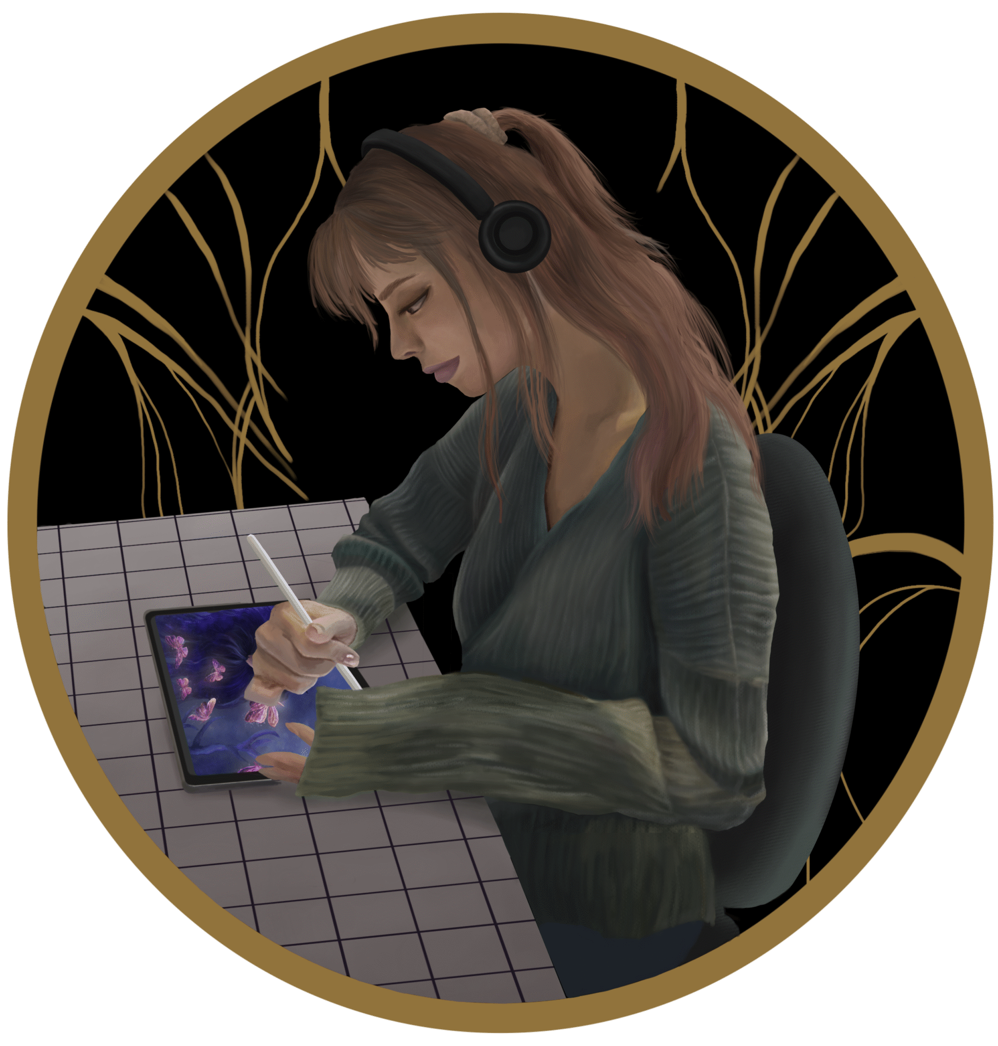 Mon processus de création débute par la recherche d’images inspirantes. Ensuite, je sélectionne les éléments qui me semblent les plus pertinents pour créer une composition originale. Que ce soit à l’acrylique, à l’aquarelle, au graphite ou sur tablette graphique avec Procreate, je m’attache à retranscrire la beauté et la poésie qui émanent de mes sources d’inspiration.